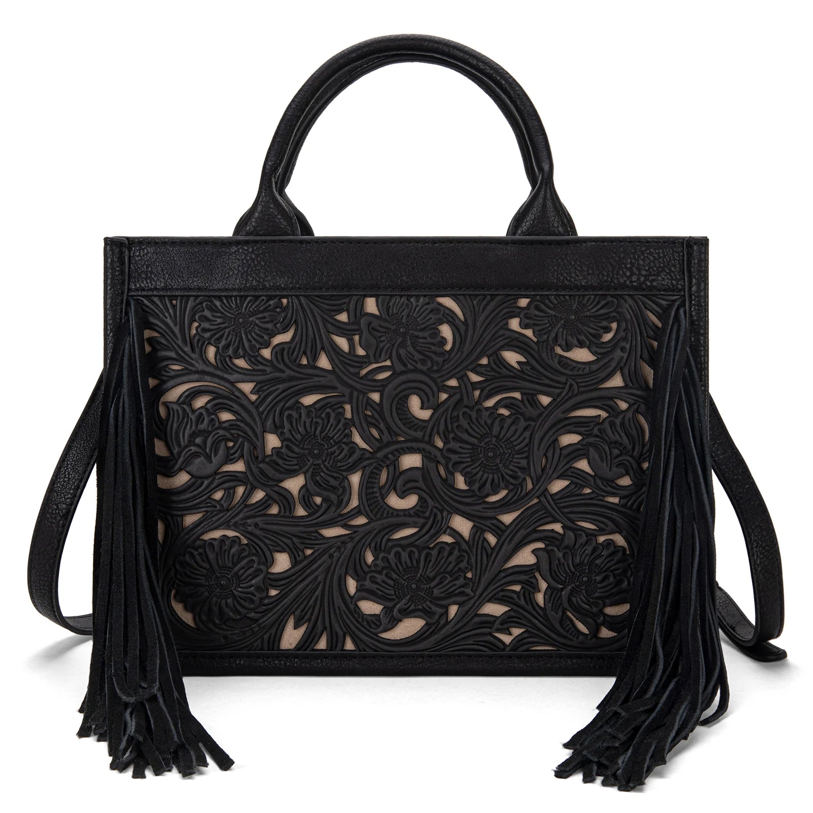 Trinity Ranch Floral Tooled Fringe Tote Bag